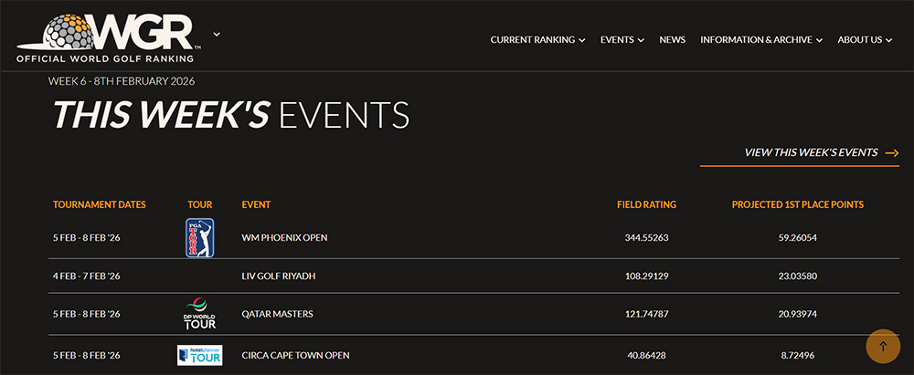 LIV’s average field size of 57 for 2026 is lower than the minimum of 75 set out in OWGR regulations;