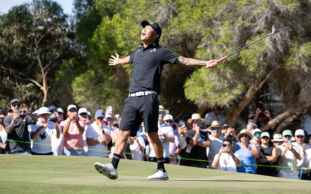 Then, in the second event of the year, he wins on the biggest stage in LIV Golf in front of record-setting crowds in South Australia.